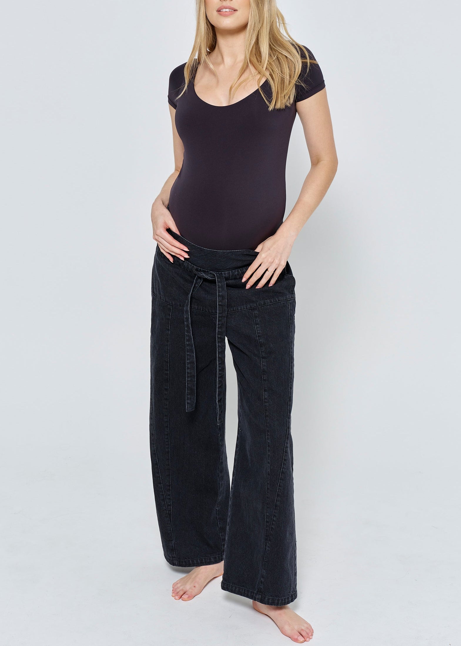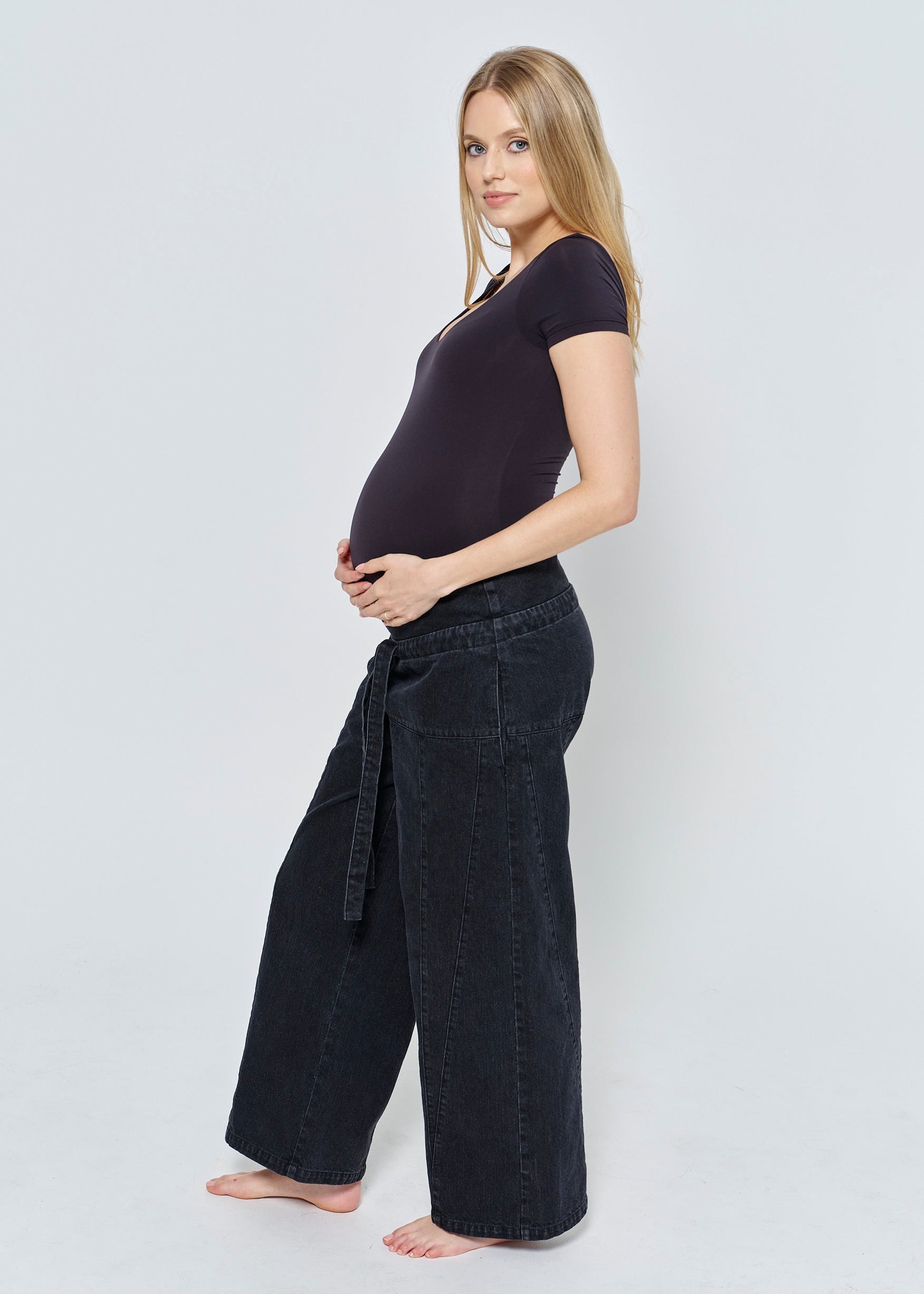 Your go-to pair of maternity jeans just got an upgrade (these are not your average maternity jeans, no toddler waist band necessary). Maternity Denim at its best, with plenty of room to grow during pregnancy, these jeans morph into a cool painter style denim that can be worn low or high using the adjustable belt, during postpartum. Our design team strives to redefine maternity apparel, so you can feel more you, and invest in pieces you can wear after and love.