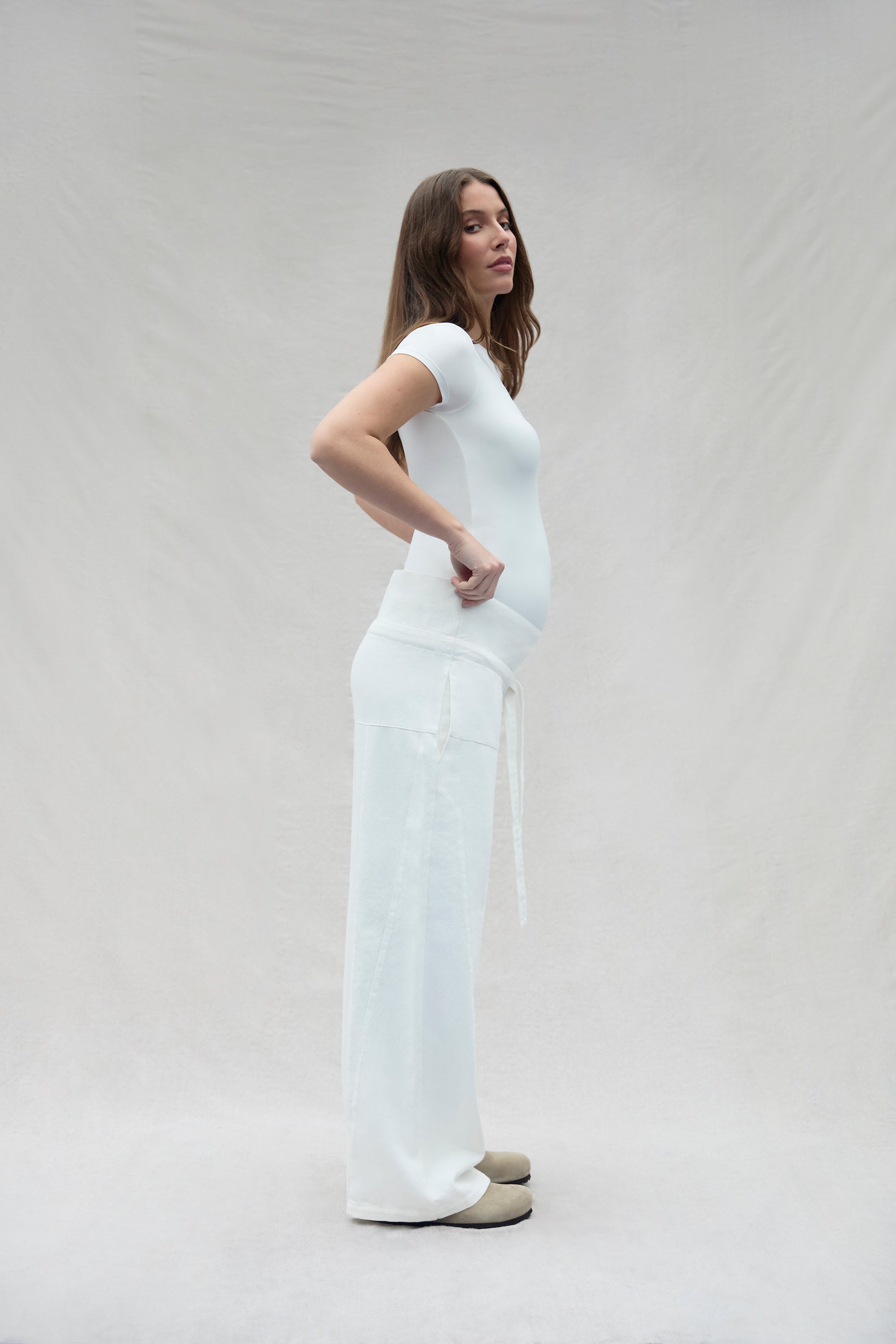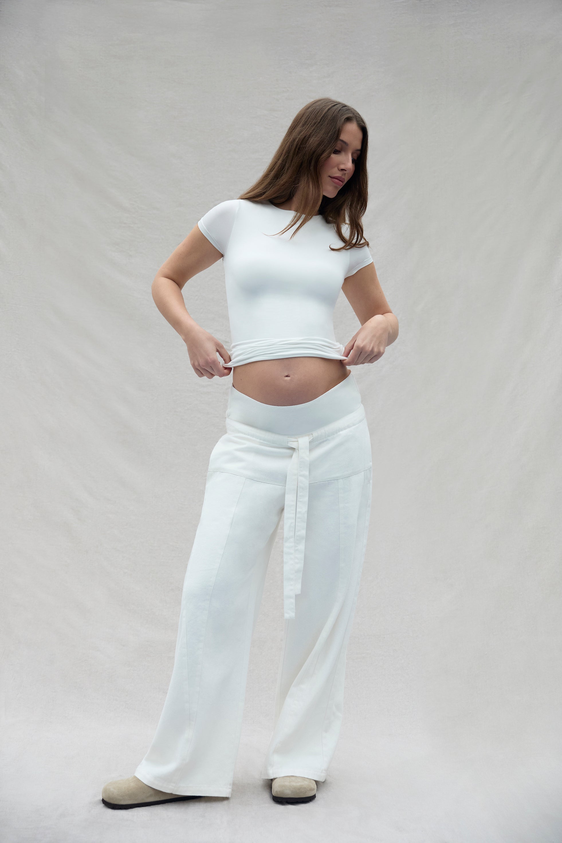 Please use our size guide to determine the your best fit. We recommend taking your usual pregnancy size, as most of our products are made to be worn during pregnancy, postpartum, and beyond.