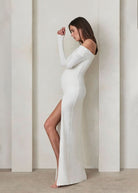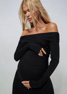 The Off the Shoulder Evening dress is a buttery-soft jersey knit dress with a supportive feminine fit and glamorous off-shoulder neckline. Made from a smooth, slinky jersey knit fabric and double lined for extra support, this style will last you through pregnancy and beyond. She's the perfect fit for any formal occasion. Bumpsuit is made to be worn throughout all stages of life, transitioning with the body as it stretches and grows throughout maternity, postpartum and beyond.