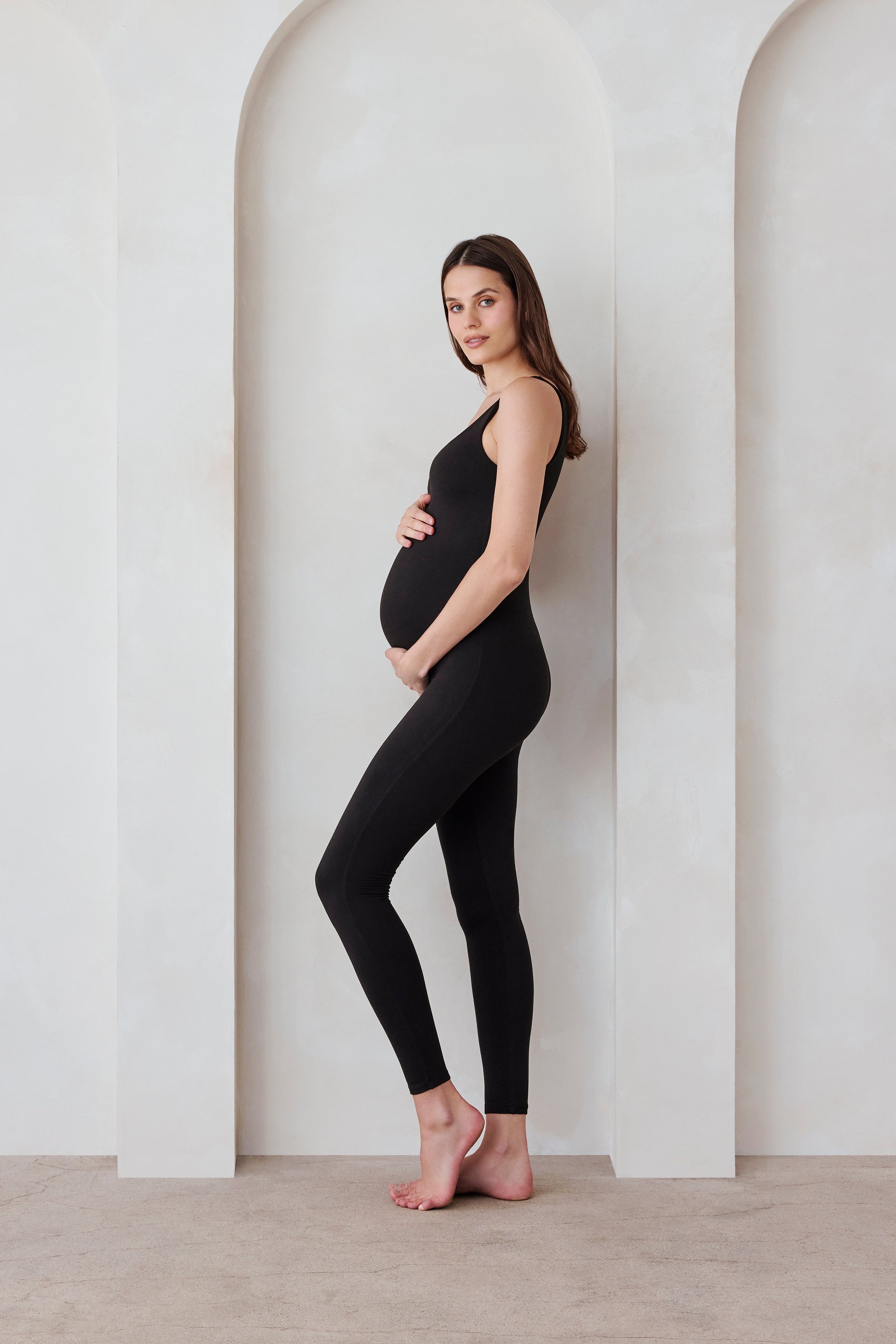 The Lucy, our best-selling, award-winning iconic Bumpsuit. Bumpsuit is made to be worn throughout all stages of life, transitioning with the body as it stretches and grows throughout maternity, postpartum and beyond. This Bumpsuit is full-length with a scoop neckline, wide supportive straps and can be styled with anything which makes it the ideal closet staple.  Double-lined in Bumpsuit Cotton Essential fabric for extra support, the cotton maternity unitard is an absolute must-have for any expecting mother.
