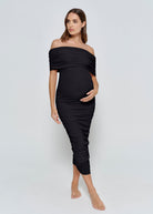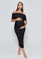 This Sleeveless Soft Mesh Dress features a chic off-the-shoulder folded neckline, combining elegance with modern style. Crafted from flattering and breathable mesh fabric, it offers both comfort and a sleek silhouette. The midi length enhances its versatility, making it suitable for various occasions while ensuring ease of movement. Perfect for those seeking a sophisticated yet comfortable option. Bumpsuit is made to be worn throughout all stages of life, transitioning with the body as it stretches and grows throughout maternity, postpartum and beyond.