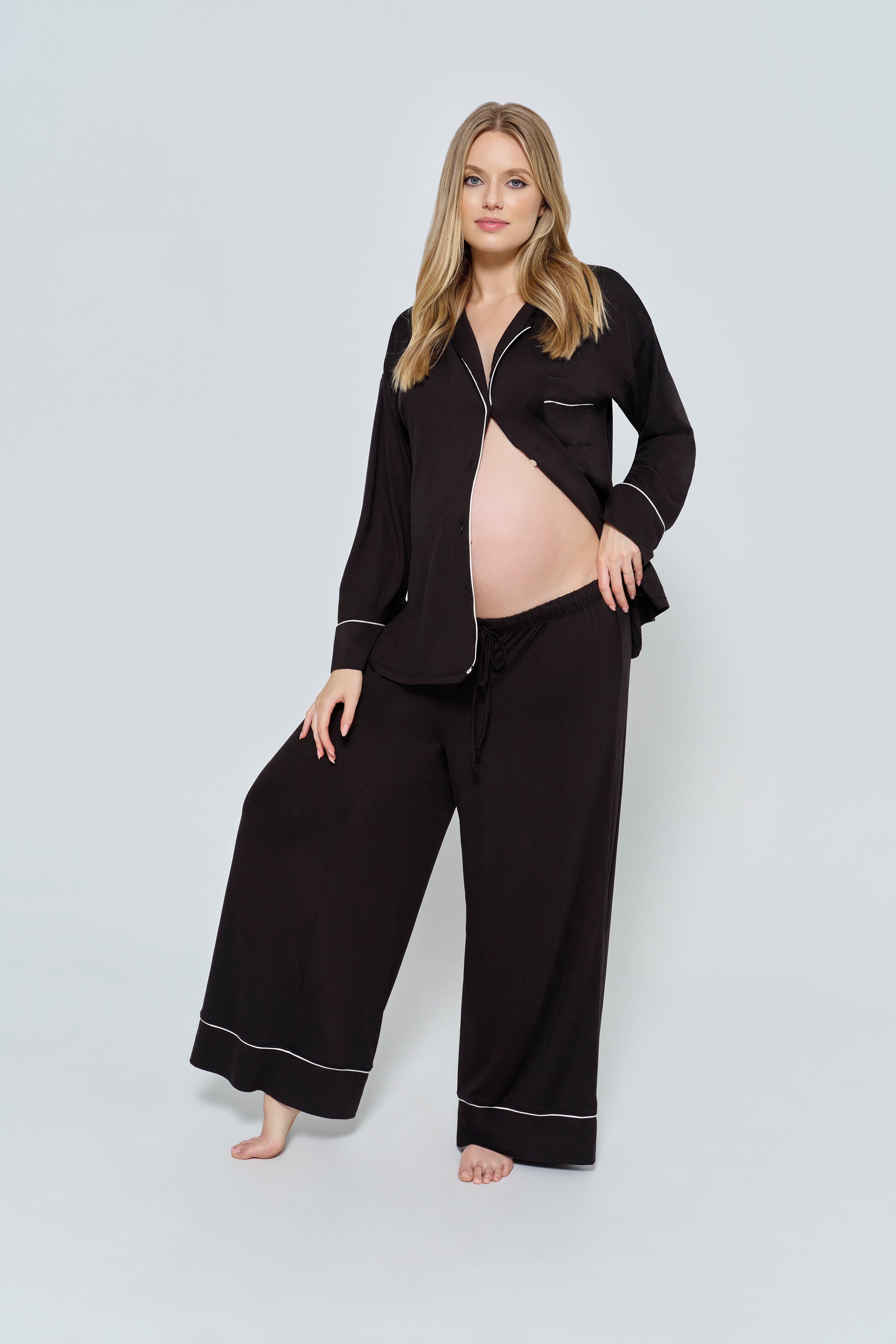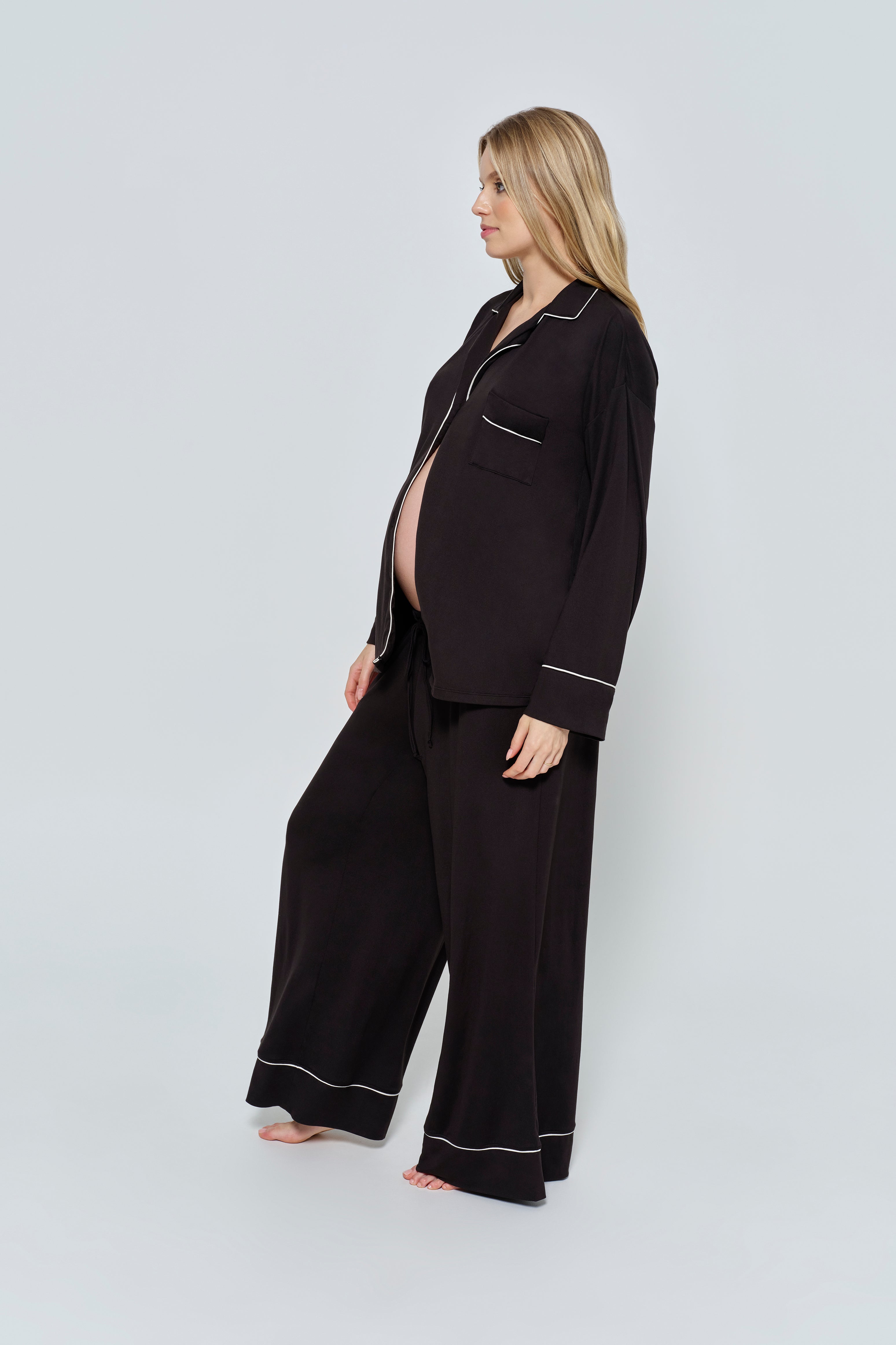Experience ultimate relaxation with the Cloud Sleep Pant, a full-length wide-leg design thoughtfully crafted for maternity comfort. Made with soft, breathable fabric, these pants feature a drawstring elastic waistband. Bumpsuit is made to be worn throughout all stages of life, transitioning with the body as it stretches and grows throughout maternity, postpartum and beyond. The crisp white piping at the leg opening adds a polished touch, making them as stylish as they are cozy. Whether you’re lounging at home, nesting, or easing into your day, the Cloud Sleep Pant delivers laid-back luxury and timeless style tailored for moms-to-be.
