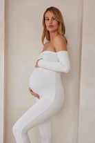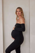 The Bella is a must-have addition to your maternity wardrobe.  Bumpsuit is made to be worn throughout all stages of life, transitioning with the body as it stretches and grows throughout maternity, postpartum and beyond. Able to be dressed up or down, this Maternity Bodysuit features a Long Sleeve, Off-The-Shoulder Strapless Bodysuit. The Bella is double-lined for extra and is perfect for a dressed-up maternity look.