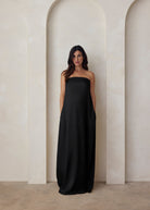 The Brushed Satin Strapless Gown, designed for mamas who want to feel chic without sacrificing comfort. Created with a soft, luxe satin blend, this gown drapes beautifully over your curves, offering a flattering fit for every stage of motherhood (yes, even postpartum). Its strapless design stays perfectly in place, thanks to a secure yet gentle gel band at the bust, while the silky finish feels as good as it looks. Whether you’re dressing up for a special occasion or creating a moment just for you, this gown is your go-to for timeless, feminine style. No need to overthink it—just slip it on and shine.