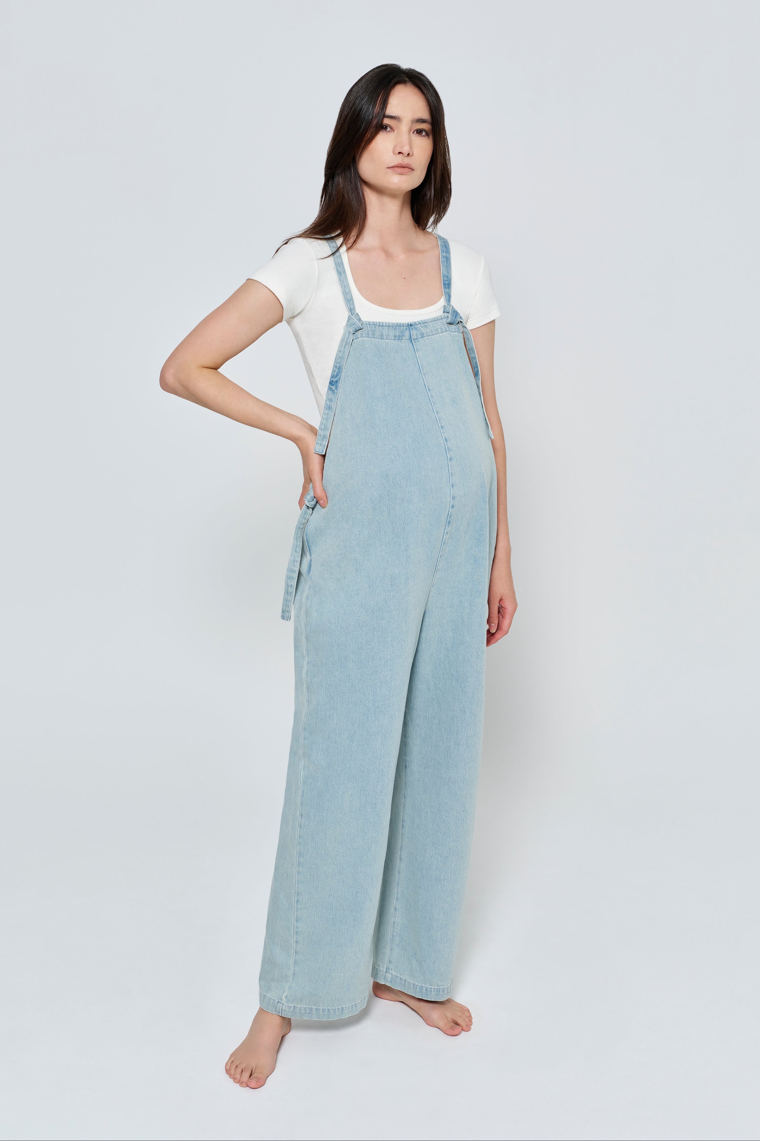 Meet your new go-to denim — effortless, adjustable, and made to move with you. The Bumpsuit Denim Overalls reimagine classic utility with a soft 100% cotton denim. Designed for every stage (and every day), these overalls feature adjustable straps and hip ties, letting you customize your fit from bump to beyond. Makes for the perfect everyday layering piece throughout pregnancy, and is nursing friendly.