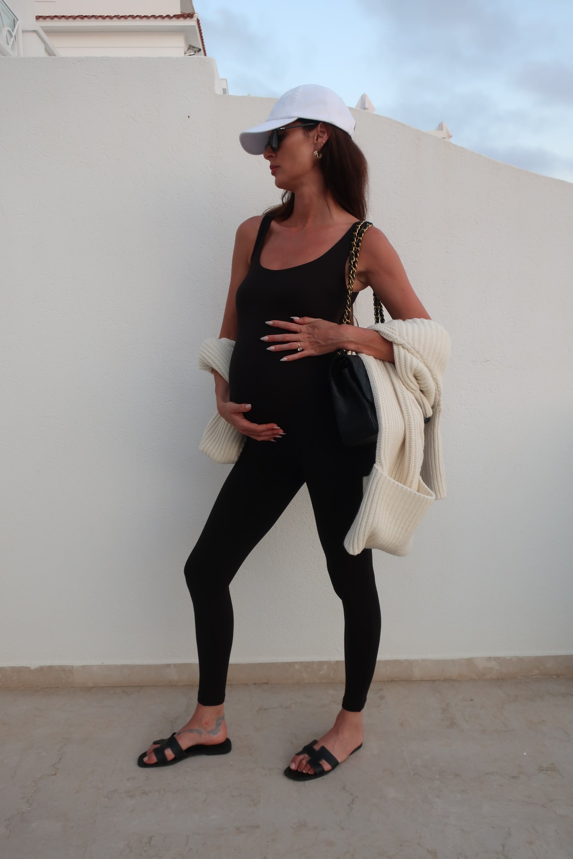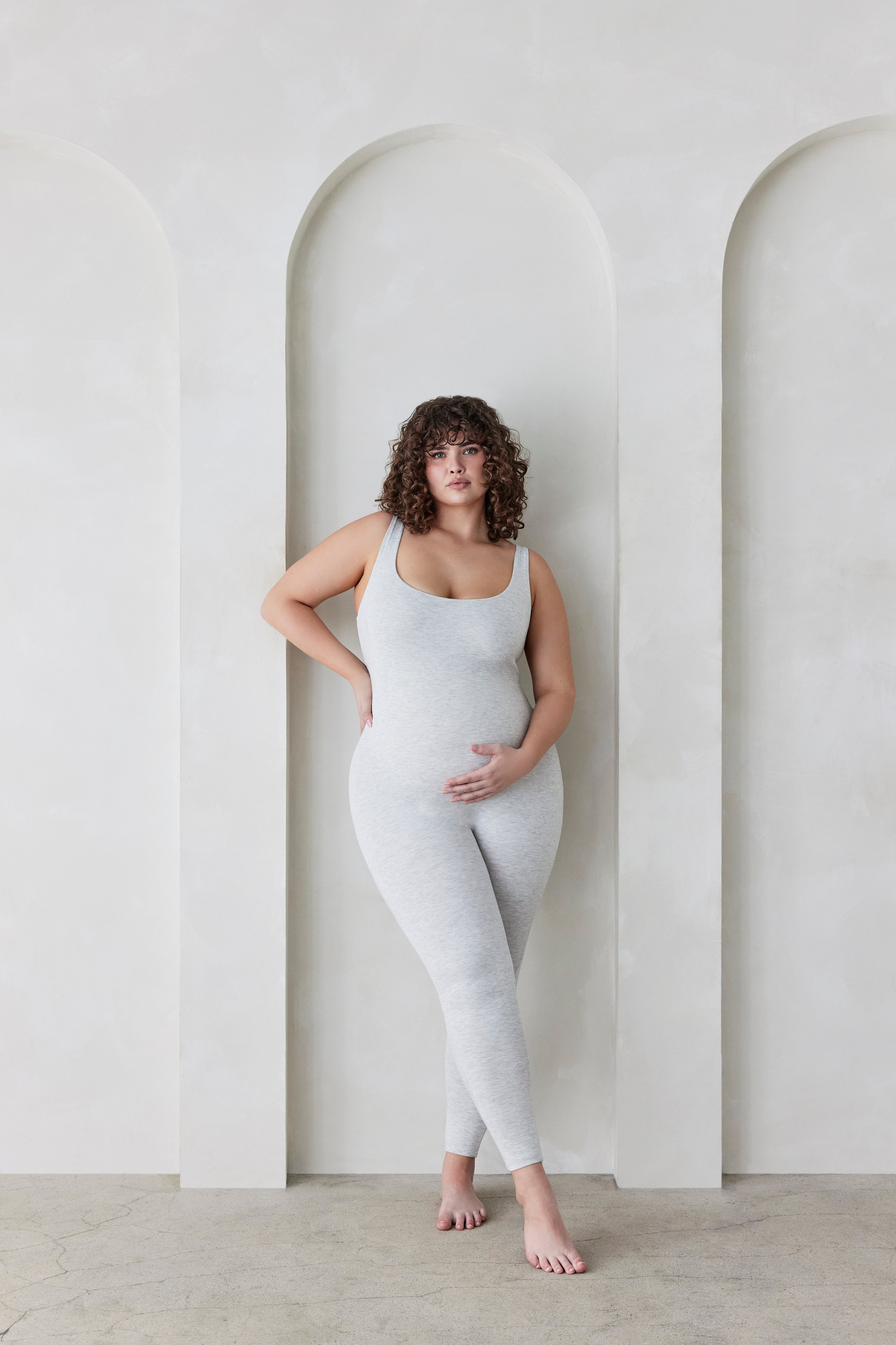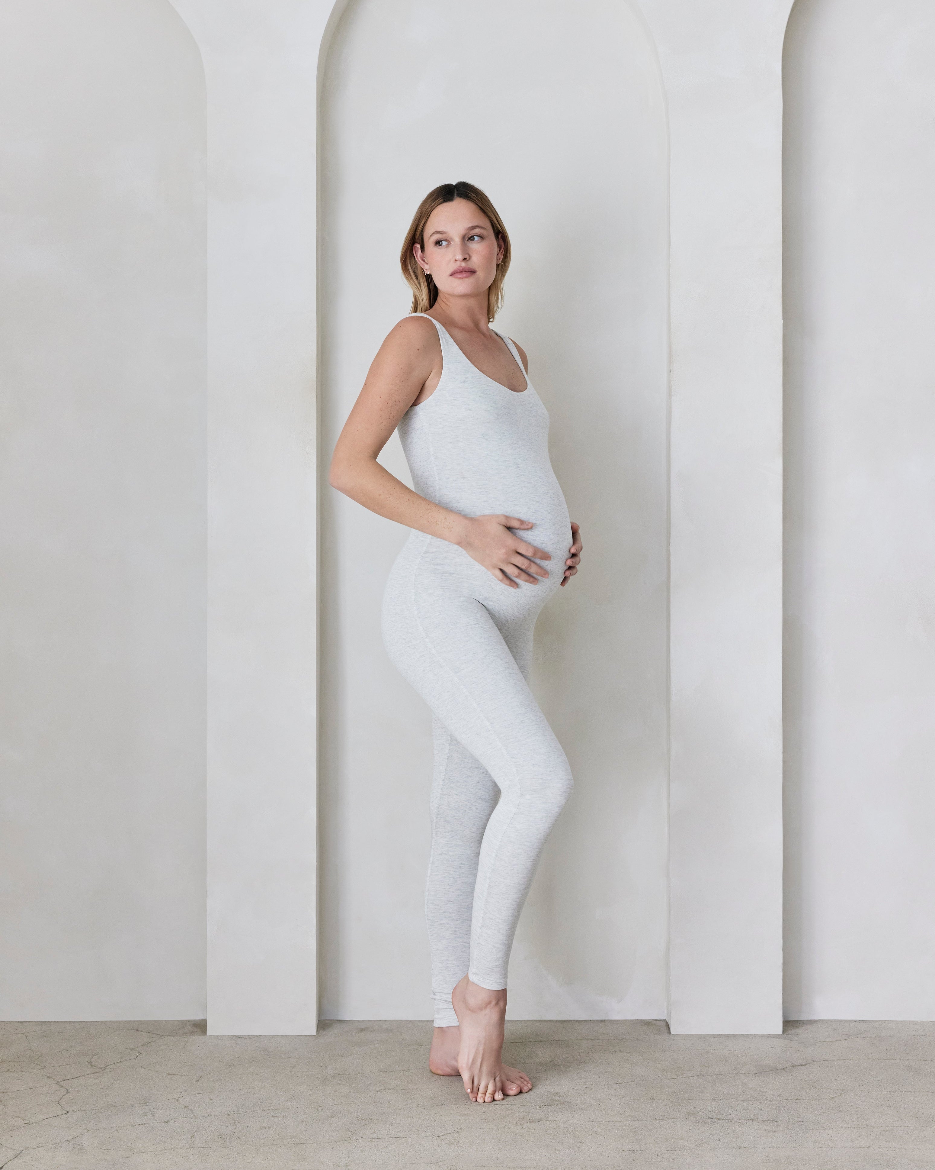 The Lucy is made from our Signature Bumpsuit fabric, which is made to gently stretch with the body through the stages of pregnancy. We recommend ordering Bumpsuit in your regular size.
