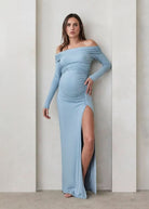 The Off the Shoulder Evening dress is a buttery-soft jersey knit dress with a supportive feminine fit and glamorous off-shoulder neckline. Made from a smooth, slinky jersey knit fabric and double lined for extra support, this style will last you through pregnancy and beyond. She's the perfect fit for any formal occasion. Bumpsuit is made to be worn throughout all stages of life, transitioning with the body as it stretches and grows throughout maternity, postpartum and beyond.
