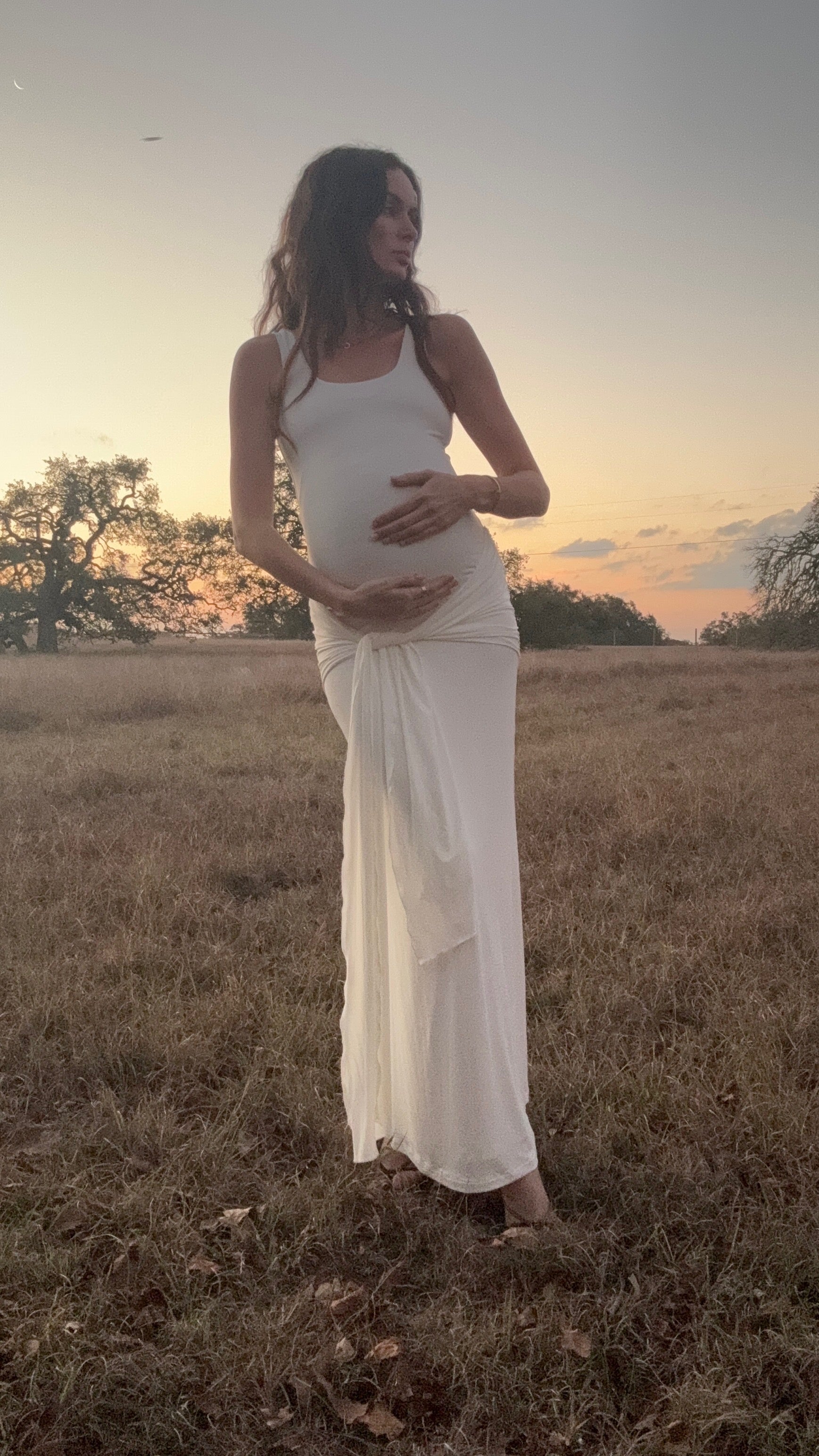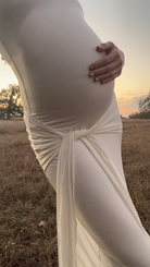 Solène is designed to move with you — a sleek, second-skin silhouette elevated by a soft front-tie detail that drapes beautifully over the bump. Minimal yet striking, this full-length dress contours and supports without restriction, taking you seamlessly from pregnancy to postpartum and beyond.