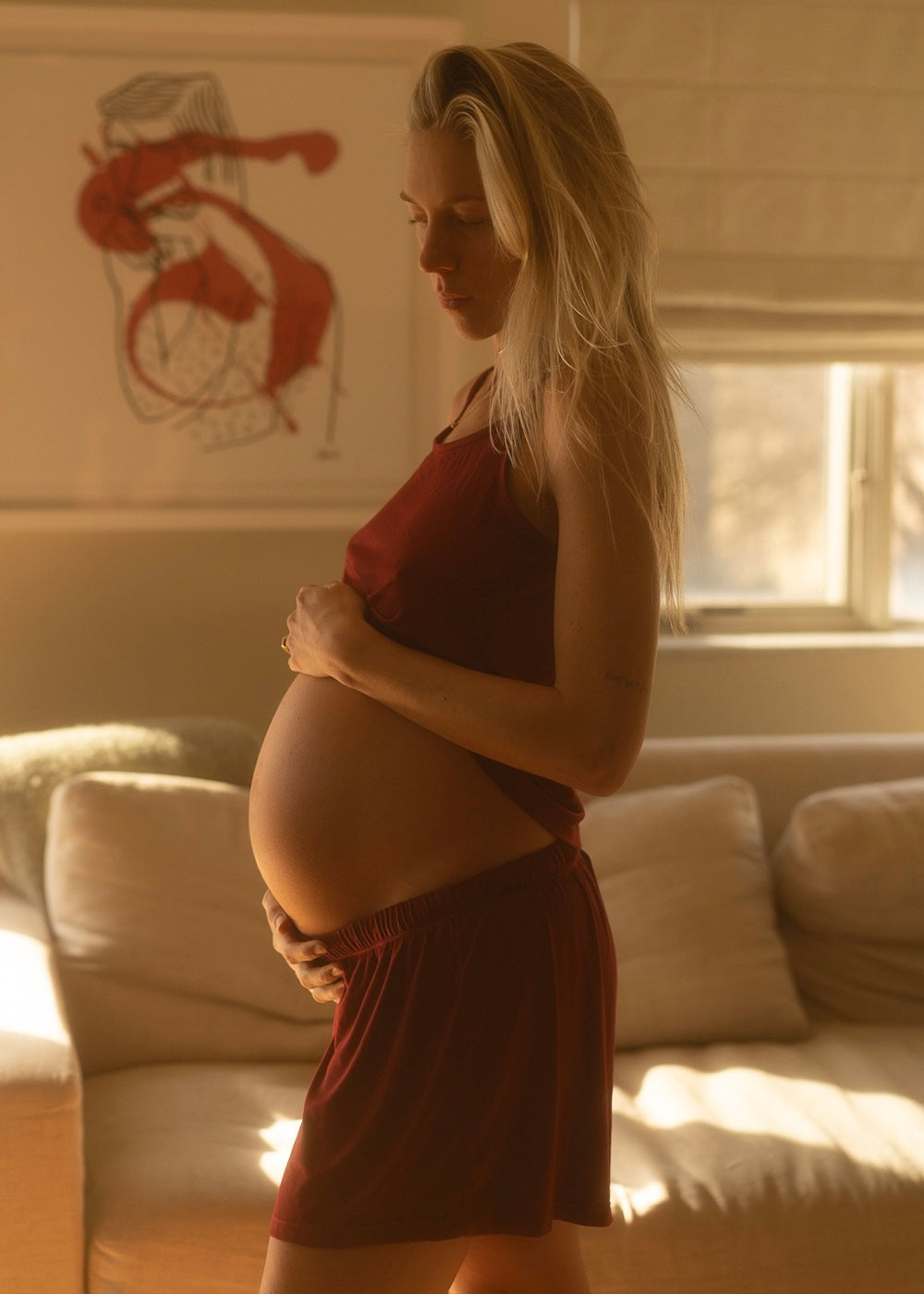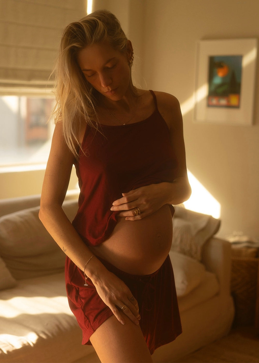 The Cloud Collection is made from our Signature Bumpsuit fabric, which is made to gently stretch with the body through the stages of pregnancy. We recommend ordering in your regular size.
