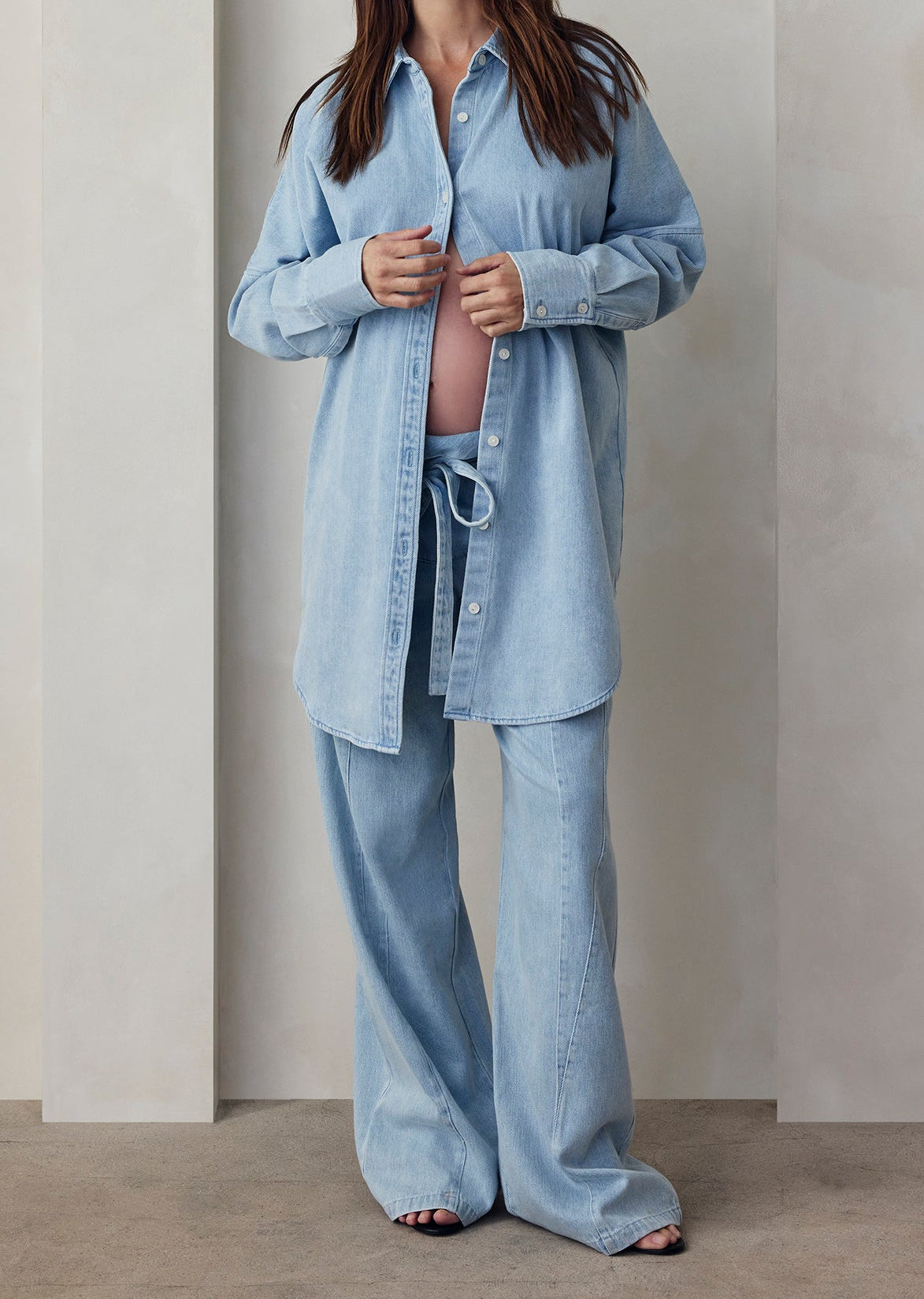 All in one! Perfect for pregnancy, postpartum (feeding friendly) to wear with pants or as a dress, the Denim Shirt is made to fit seamlessly into your life. Designed for ultimate comfort, this soft denim piece gives you the freedom to move while keeping you stylish and relaxed. Its loose, oversized fit allows for plenty of room as your body changes during pregnancy, and it's just as easy to wear post-baby. No fuss, no discomfort—just effortless style. Dress it up or down, at home or out with friends, and feel confident no matter where the day takes you.