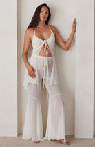 I got this top along with the matching pants and it was a major hit during my girls weekend to celebrate a friends birthday. We had a sheer clothing theme for "@$$ Out" & for me it was "Bump Out". I got a lot of compliments. I love that the top has a long string so even if you gain weight or lose weight the top can shift in size with the strings at least. I'm 5'4 and 194 lbs currently in pregnacy. I wore Nude nipple covers and it worked well. Nothing was visible even with flash.